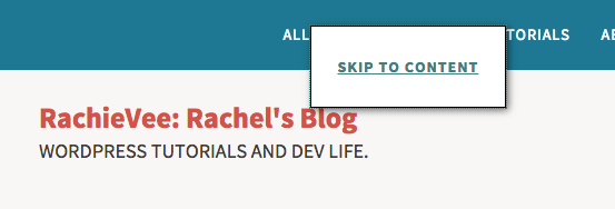 Before we go on with this, I want to point out Carrie Dills’ post, How to Add Skip Nav to Your WordPress Theme. She explains what skip links are as well as how to implement in less than 5 minutes without code!